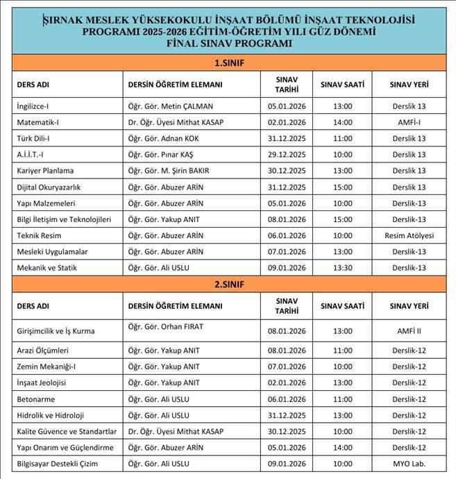 13.12.2025 | İnşaat Bölümü